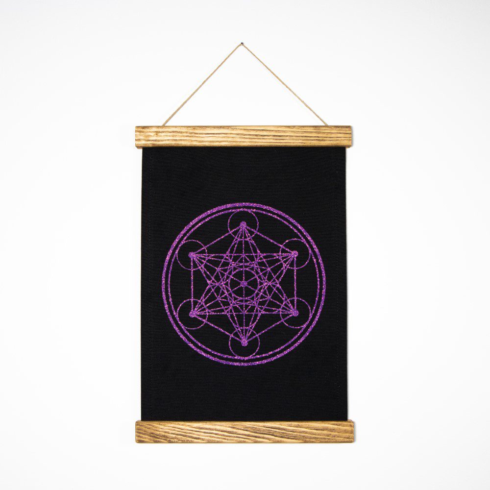 To platno je edinstvena stenska dekoracija, ki vključuje simbol svete geometrije - Metatronovo kocko. Metatronova kocka je kompleksen in mističen simbol, ki tvori tridimenzionalni vzorec iz 13 med seboj povezanih krogov in črt.